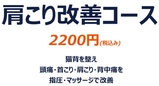 肩こり改善コースは猫背を矯正しつつ、経絡を用いた指圧・マッサージで首こり・肩こり・背中痛を緩和します。