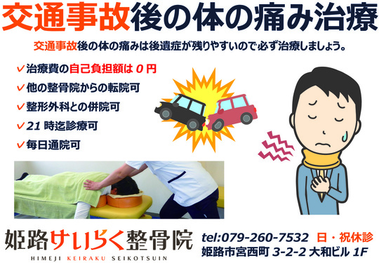 こんにちは、姫路市宮西町にある姫路けいらく整骨院です。